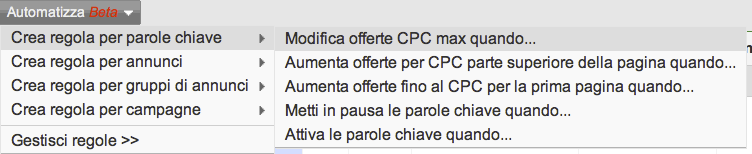 Per vedere i tipi di regole più utilizzati dagli inserzionisti, consultate questo articolo del Centro assistenza AdWords. Per ulteriori informazioni sulle regole automatizzate, visitate la pagina Innovazioni pubblicitarie.